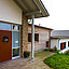 Als Fassadenmaterial werden für die unterschiedlich ausgeformten Baukörper Verblender, Holz und Putzflächen in Kombination mit Flach- und geneigten Dächern ausgeführt.